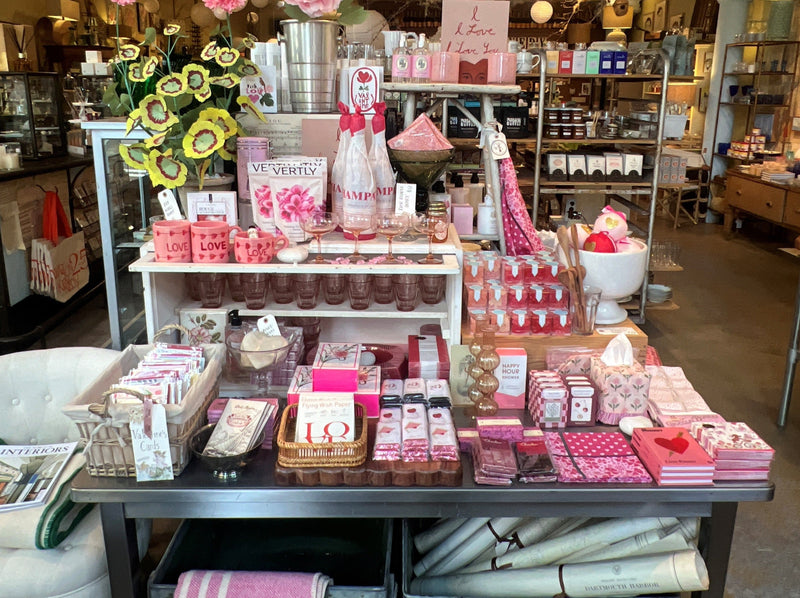 Ahhhhhhhh, our Valentine table. Always makes me happy! A little bit of this, a little bit of that. All things to spread a bit of love to those you love. Be it a French dish towel, tin of truffle chocolates, or an original painting to make the heart sing. Plus lots more that is sure please. LOVE is in the air at Watson Kennedy!