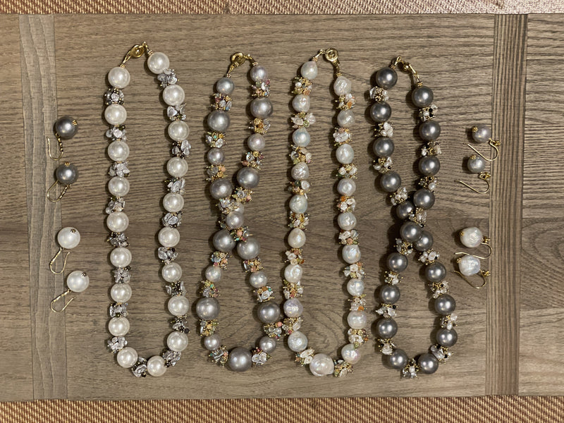 I love when customers tell me some of their favorite pieces of jewelry are from Watson Kennedy. Exclusively made for us, these weighty strands with clusters of mixed gems & Keshi petals beaded between bright, lustrous pearls are extra special and stunning. Though fully contemporary these look as if they have been handed down through generations, they will become instant favorites.