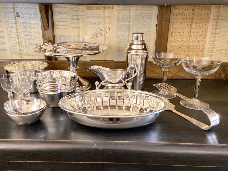 Our collection of vintage hotel silver from England grows and grows. All of our pieces are heirloom quality. They have lived a very active full life, have been re-silvered and are once again ready for another fruitful life giving much, much happiness. Hotel silver is a workhorse. They are meant to be used. Food safe, they will make any setting they grace absolutely sing.
