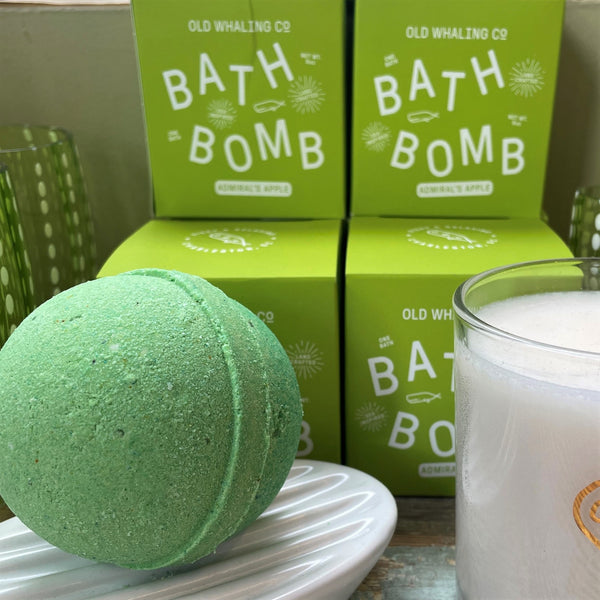Handmade with baking soda, citric acid, epsom salts, olive, and soybean oil, Old Whaling Co. 8oz bath bombs will leave your skin feeling moisturized and lightly scented. Our bath bomb's soothing fizz and sea-inspired fragrance are perfect for a relaxing soak, rejuvenating the senses and cleansing the skin.