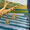 A little aqua hued square Swarovski with rhinestone border to add a bit of bling and shine to your day. Then as an understated wow factor for the evening event whether gala or simply meeting friends for dinner. 14k gold vermeil French ear wire.