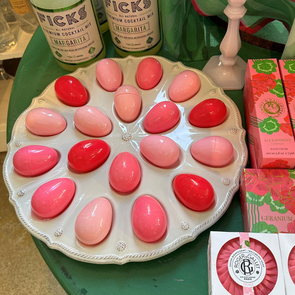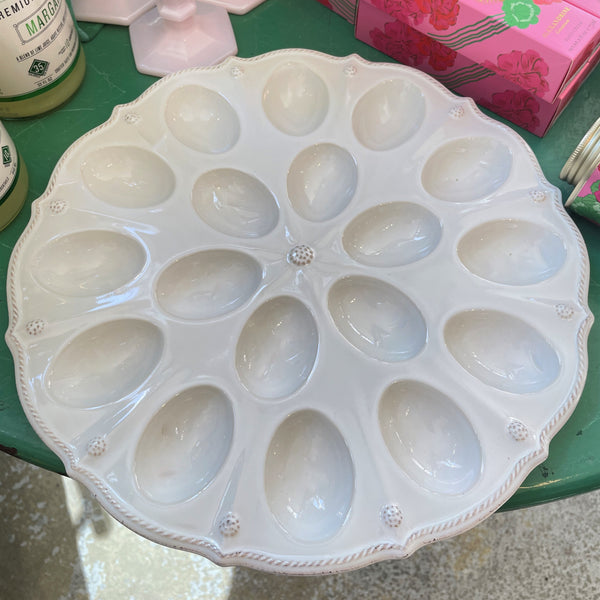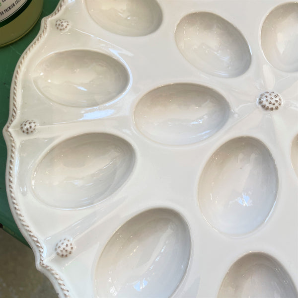 One big 18 egg platter with the iconic Berry & Thread motif. What better way to present those deviled hors d'oeuvres? Served on the big table at home or taken to the party, this platter is such an elegant delivery.
