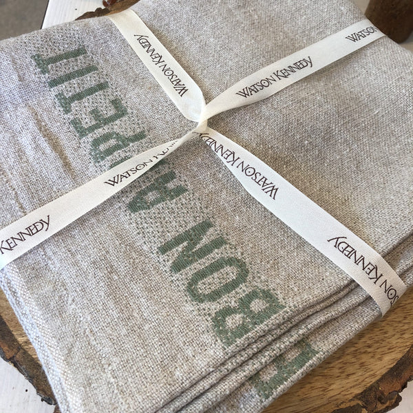 Linen blend and such a charming print in a WK fave color, GREEN! A set of four that will last and last.