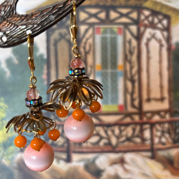Creamsicle Chadelier with Cherry Quartz & Brass Earrings