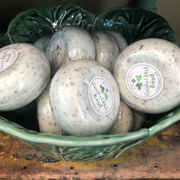 These round exfoliating bar soaps are just fantastic. Great scents and oh-so hydrating.