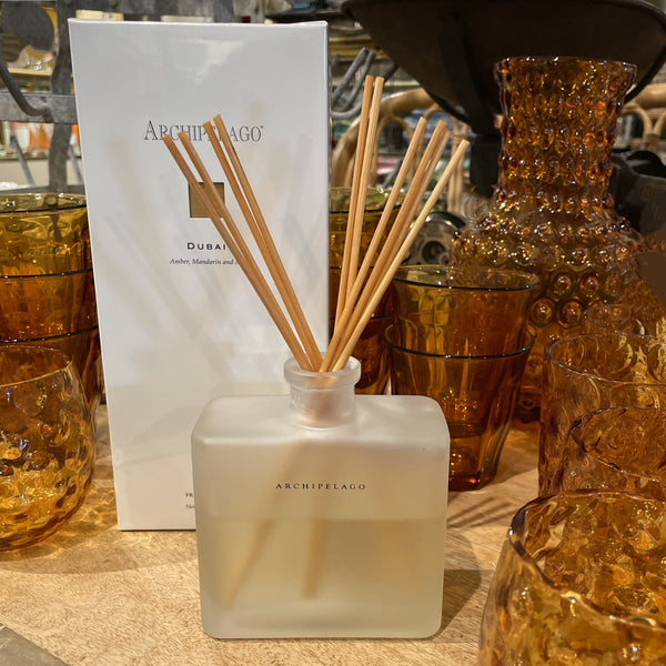 Inspired by favorite destinations around the world, these truly transport you. The notes in the Dubai fragranced diffuser are Amber, Mandarin and Musk.