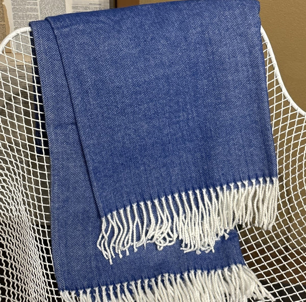 Fringe Herringbone Cobalt Throw