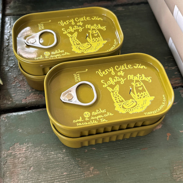 A very cute tin of safety matches in an olive-green hue, totally refillable this adorable container with faux pull tab would look just as stylish on a camping adventure as it would by the fireplace. A great add on when gifting a candle or as a thank you for your summer camp counselor. Striker on the side.