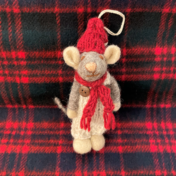 Grey Mouse with Scarf Ornament