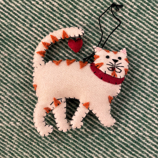 The purrrrrfect gift from the heart for cat fanciers. These handstitched and appliqued felt kitties are full of life accented with beads and embroidery. Great for adorning the holiday tree or display year round as a reminder of fur friends past and present.