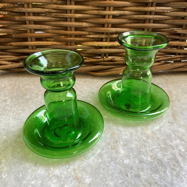 French Porta Candele Green Glass Candlestick