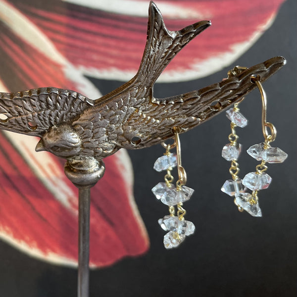 I love the movement of the dangle hoop earring paired with the multi-faceted Herkimer diamonds. A stunning pair of earrings to gift or to keep.
