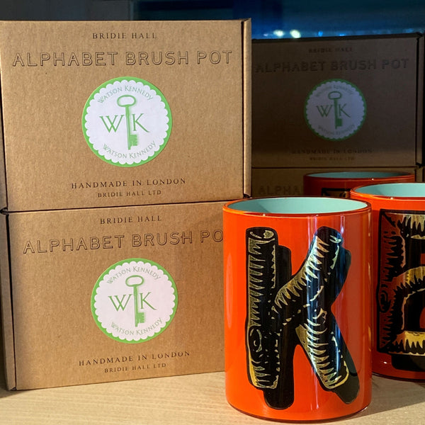 Desktops don't have to be dull and studios so serious. Put all your pens into an alphabet pot! Brighten up your brushes! Organisation just became beautiful and we've got the brush pots to prove it. Make up your initials, spell out your name, a favourite word, a happy thought, get creative, make up the whole alphabet – the possibilities are endless! Personalise that work space, treat yourself - you're worth it!