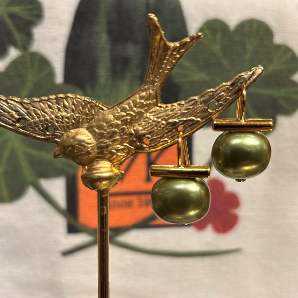 Medium Pale Green Pebble Pearl Earrings