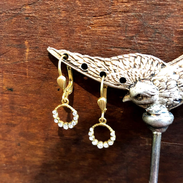 Love the sparkle on these delightfully delicate Swarovski crystal hoops! A bit of bling on a teeny ring set at the end of a 14k gold plate French clasp with dainty shell detail.