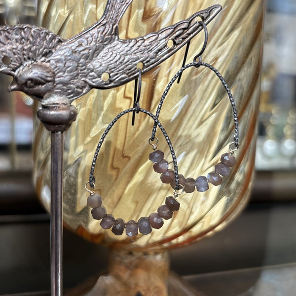 Oxidized Silver Arches Chocolate Moonstone Earrings