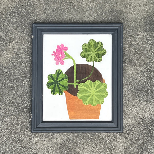 Pink Geranium in Clay Pot with Vintage Black Frame by Denise Fiedler