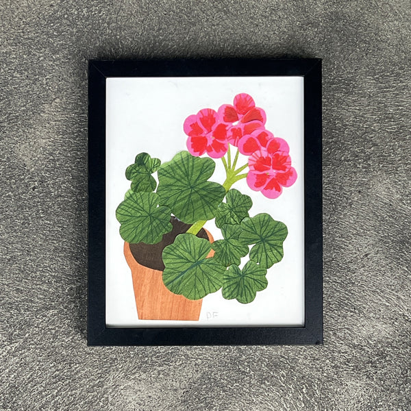 Pink & Red Geranium in Clay Pot by Denise Fiedler