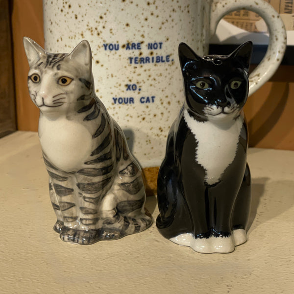 Season your table setting to perfection with these charming salt and pepper shakers. Specializing in quirky British homeware with a strong emphasis on fun, Quail's painted stoneware pieces are irresistibly collectible. Each creature is designed in the brand's studio, drawing inspiration from across the animal kingdom in their quest to create fun with a focus on utility. Great as gifts as a remembrance of current or past favorite fur friends.