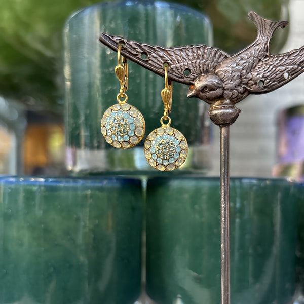 A shimmering surface of pave rhinestones radiating out with seafoam green waves. A tiny bit of sparkle and shine with a summery hint of color. Now all you need is the wafting caftan and you're ready for the party.