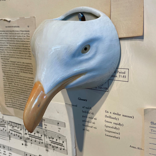 Created in England, these hand-painted stoneware creatures will delight, especially this nautical themed wall vase, perfect for bird watchers, the beach house, holding some blooms or just adorning the wall in the meantime.