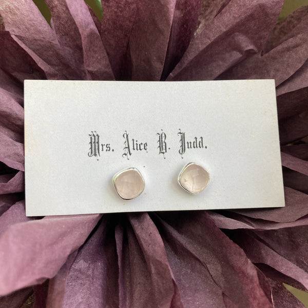 Silver Post Earring in Rose Quartz