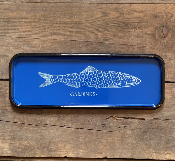 Just the thing for serving, the durability of the enamel meets nautical design and gorgeous blue perfect for out-door entertaining, a picnic basket, a boat or poolside. This is such an adorable tray it may just become the decorative element on the kitchen shelf. Just remember to pull it down and serve a sardine sampler with crackers and capers!