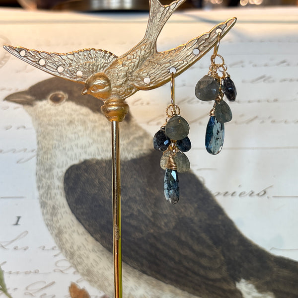 Wrapped Moss Aquamarine Drop Cluster Earrings